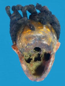 Home / SOLD ITEMS / DT07 Skull Iatmul Overmodelled East Sepik Province Human Hair see similar South Australia & British Museums / SKULL_DT07g